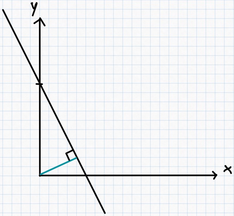 Det där är det kortaste avståndet, från origo till linjen y = - 2x + 10