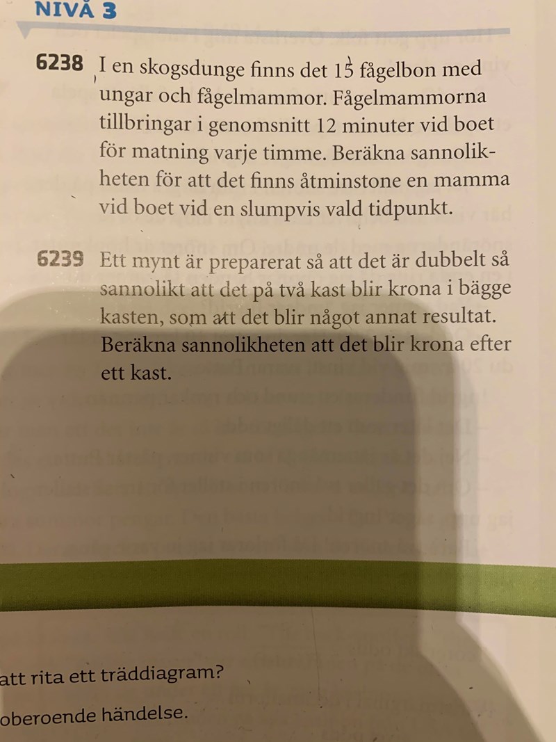 - Sätt upp ett uttryck för sannolikheten att det blir krona två kast i rad.