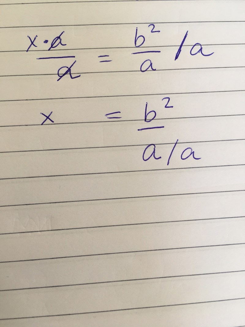 Eller ska jag dividera med a? På båda sidor? Men isåfall blir det x= b2 och det stämmer inte.