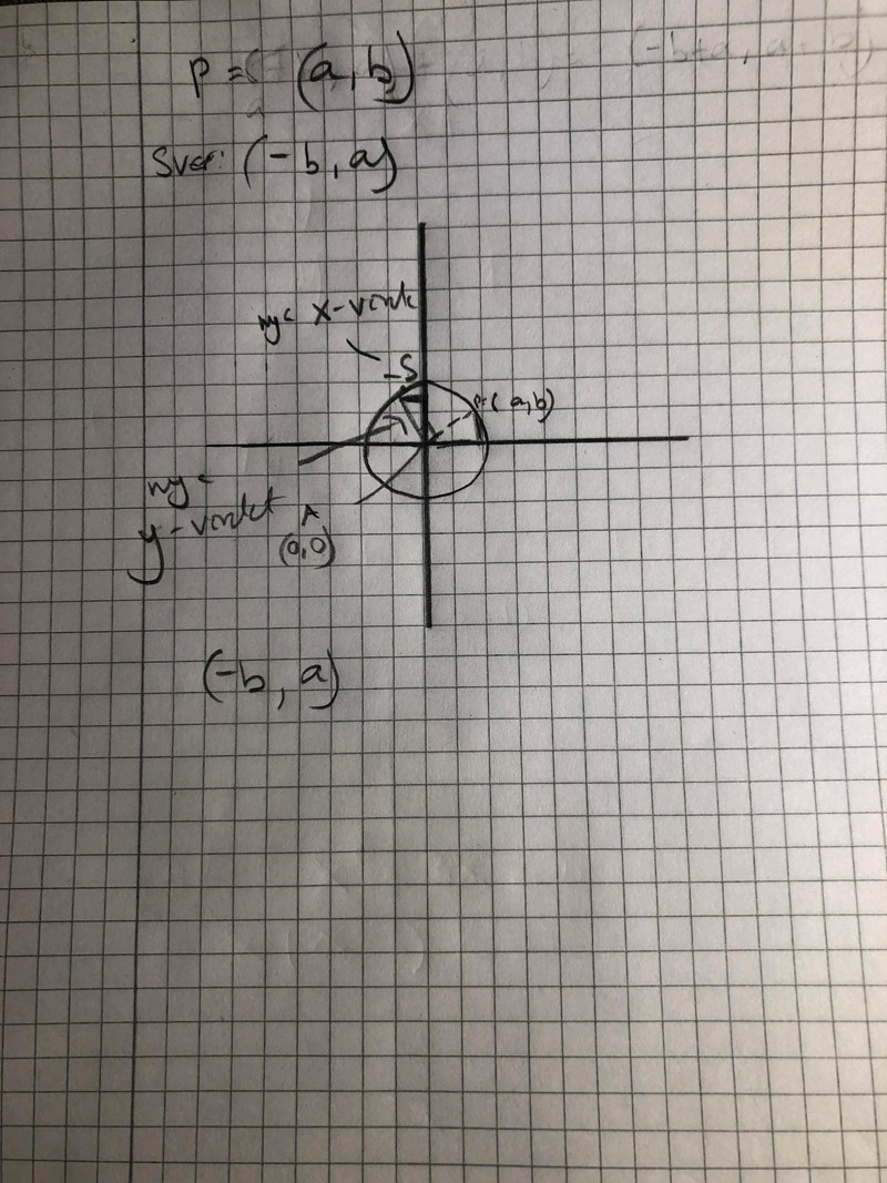 Det enda jag lyckats komma fram till är att om (a,b) vrids 90 grader kommer punkterna istället att vara (-b,a) + (a,b). Jag är osäker.