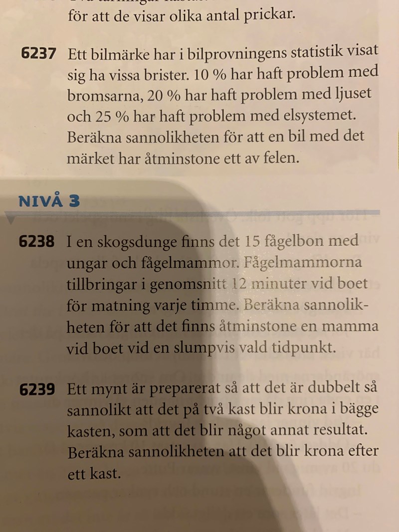 Sannolikheten för att en mamma är borta från sitt bo är då 48/60. (komplementhändelsen)