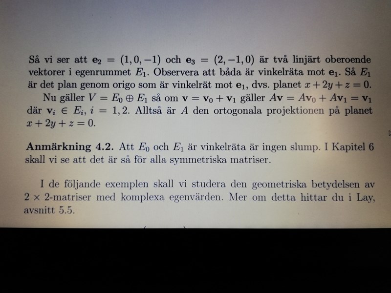 Hej, i övre delen av bilden så förstår jag inte hur kommer vi fram till att A, är den ortogonale projektionen på planet.