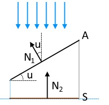 Den bruna arean SS är alltså projektionen av den svarta arean AA. S=AN^1·N^2=Acos(u)S=A\hat{N}_1\cdot \hat{N}_2=A\cos(u)