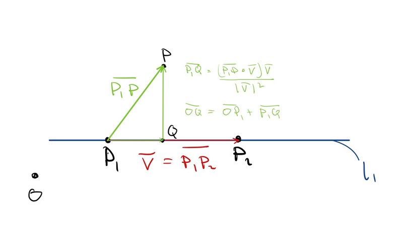 Det här är en gammal tenta-uppgift. Jag har löst allting i 2a, förutom att jag inte förstår i lösningsförslaget varför ska vara med i ”projektionen på linjen ges alltså av: blabla”.