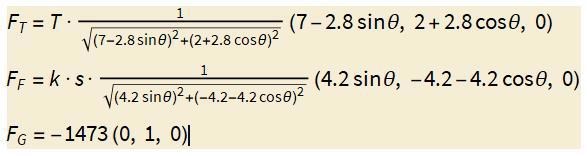 Om jag ska utrycka kraftmomenten som är T, G och F (fjädern), stämmer dessa?