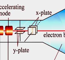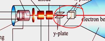 x och y-plattorna avlänkar strålen med hjälp av det elektriska fältet.
