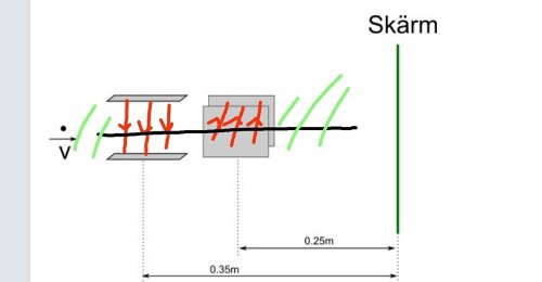 Men förstår dock fortfarande inte varför man vid beräkning av tiden då elektronen är mellan plattorna (s=vt) räknar med den hastigheten (v) som gick rakt fram (den man fick genom tidigare beräkning #7)