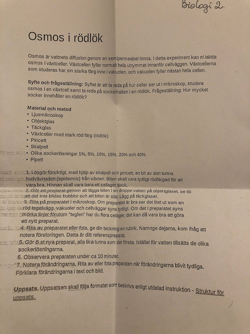 Jag har utfört denna laboration och såg skillnaden mellan dom olika sockerlösningarna men jag förstår inte hur man besvarar frågeställningen. På vilket sätt ska man veta hur mycket en rödlök innehåller genom labben.