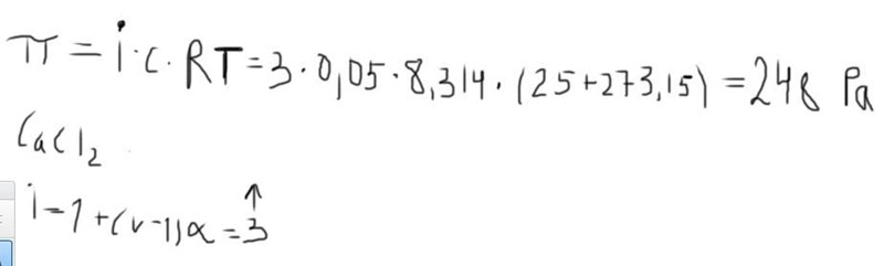 Räkna ut osmotiska trycket av 0,05 M Calcium chloride solution när det är 25 grader Celsius.