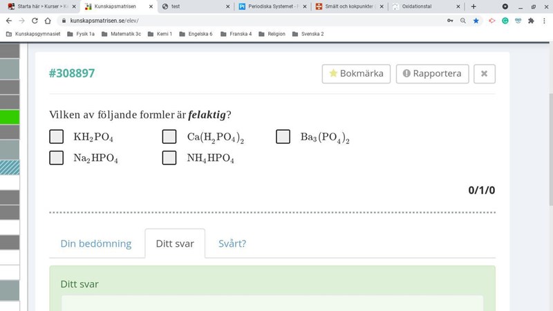 Smaragdalena skrev:Nej, alla jonerna är sådana som du bör kunna (inklusive laddning) redan. Dessutom kan du knappast få fram OT och du inte vet laddningarna (i alla fall inte korrekta OT).