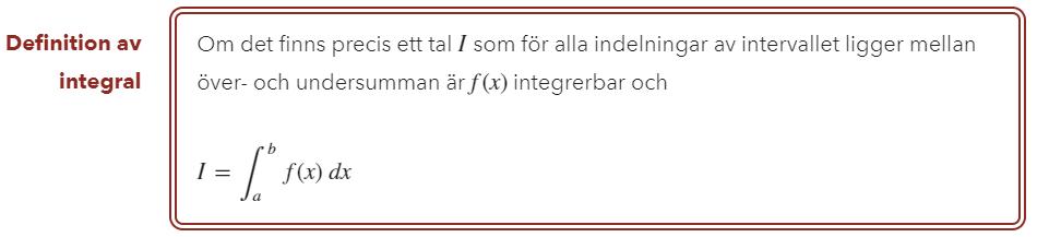 Är det för att det handlar om ett tal I som för alla indelningar av intervallet ligger mellan över- och undersumman?