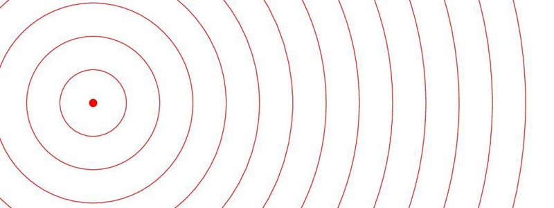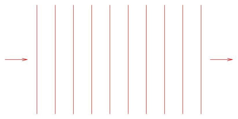 Ju längre ifrån källan du kommer ju rakare blir linjerna. Kommer du tillräckligt långt ifrån blir det till slut som nedan: