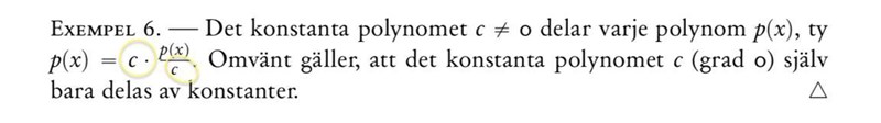 Notera hur man har översatt begreppet delbarhet mellan heltal till begreppet delbarhet mellan polynom: