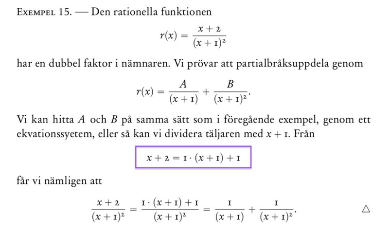 , och vi delar täljaren med får vi inte ? Jag förstår inte hans bråkuppdelning.
