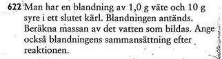 9 gram vatten verkar alltså rimligt och det blir en del O2 över.