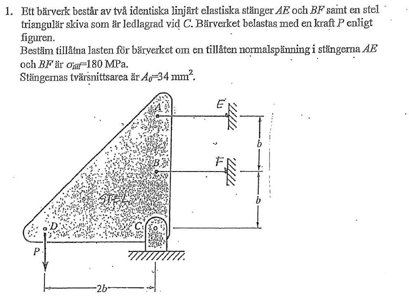 Du ska ta fram ett deformationsvillkor för strukturen. Du har nämligen nu tagit fram en användbar relation (momentrelationen) och behöver en till.