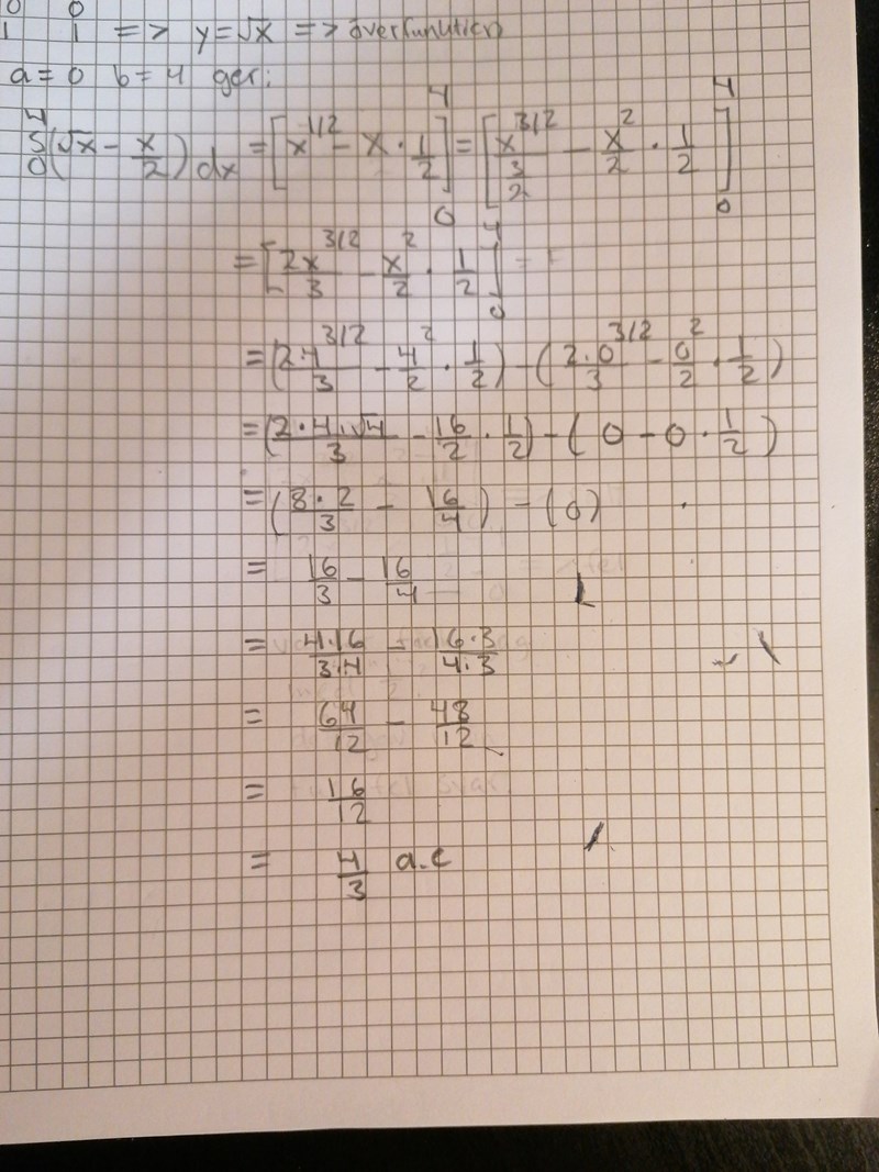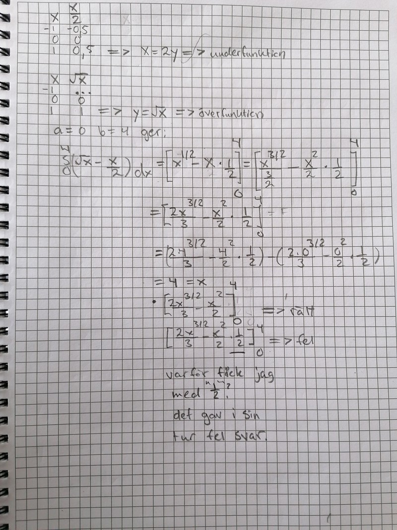 Du har fortfarande inte visat hur du räknade när du satte in x = 4 i den primitiva funktionen. Jag kan inte hjälpa dig om jag inte får den fakta jag ber om.