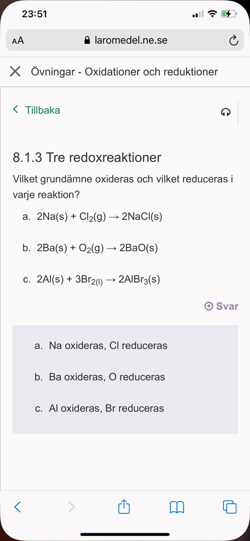 Du kan se det på flera vis, t.ex. i exemplen saknar reaktanterna laddning. Och det bildas ett salt vid varje reaktion, och saltet har ingen nettoladdning. Men om du delar upp saltet i dess joner, kommer du se vilken jon som är negativ (har tagit emot elektroner) och vilken jon som är positiv (givit ifrån sig elektron).