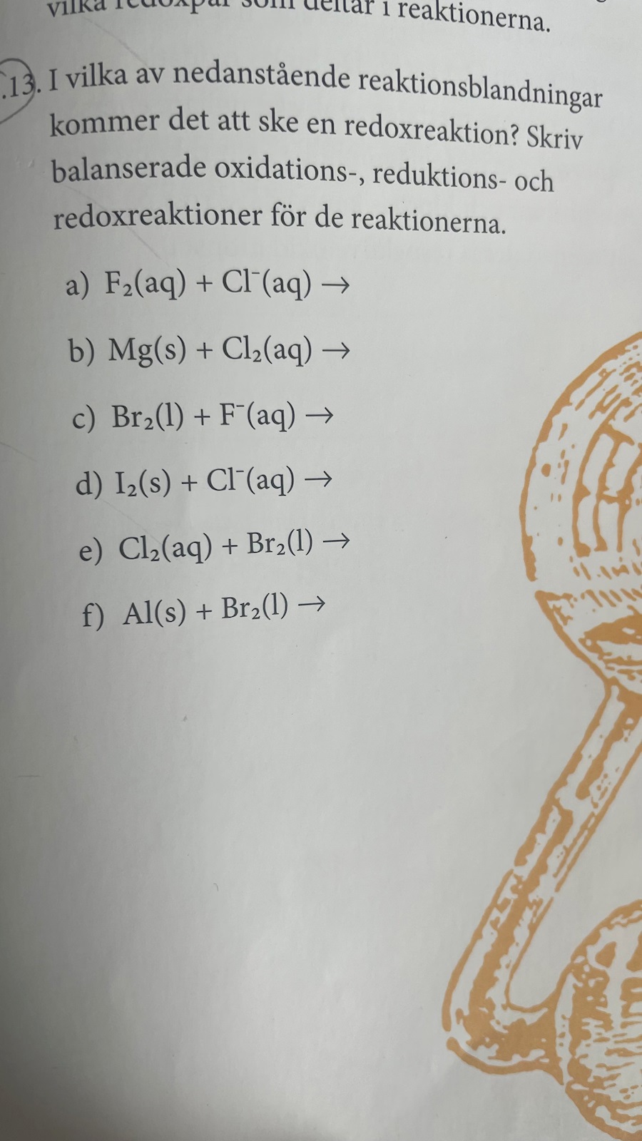 Du behöver veta att för halogenerna så kan molekyler av en viss halogen oxidera halogenid-joner av de halogener som är nedanför i periodiska systemet. (Däremot händer det inte tvärtom.)