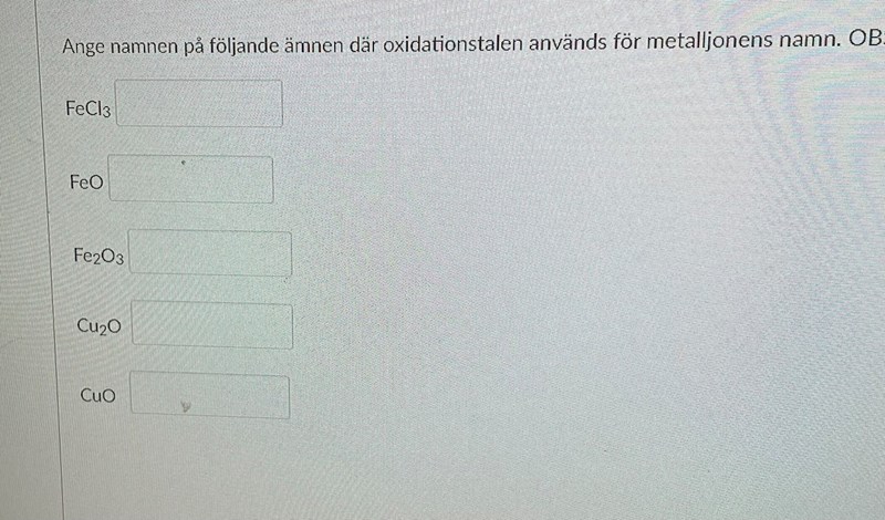 Kommer du vidare härifrån? För den första frågan, FeCl3 förväntas du komma ihåg att kloridjonen har laddningen (och alltså även oxidationstalet) -1.