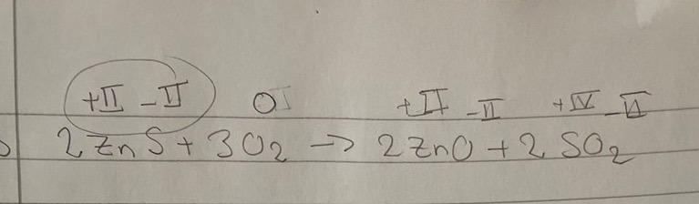 Hej i denna formel hur skulle man veta oxidationstalen för 2ZnS? Det jag har ringat in?