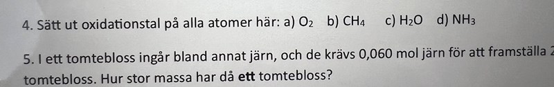 Fråga 4) Jag förstår inte hur man ska räkna ut oxidationstal kan någon vägleda mig