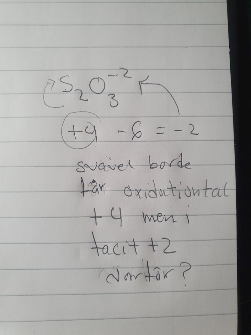 Hej, kan någon förklara varför oxidationstslet för svavel blir +2 ?? Jqg får det till +4