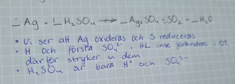 Jag vet hur man löser uppgifter med OT-medtoden men jag förstår inte hur man kan göra H2SO4 till bara SO42- och inte HSO4-. Vart tar det andra vätet vägen, kan man bara strunta i det? Och varför i så fall?