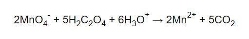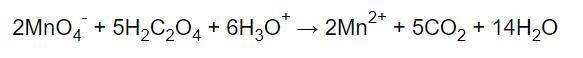 2 MnO4- + 5 H2C2O4 => 2 Mn2+ + 10 CO2