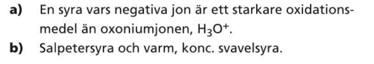 Hej! vad exakt innebär det att syrans negativa jon är ett starkare oxidationsmedel än oxoniumjonen? Oxidationsmedel är väl ett ämne som har en stark eller svag förmåga att oxidera ett annat ämne, alltså få ett annat ämne att ge ifrån sig elektronpar. Oxoniumjonen är väl ett svagt oxidationsmedel eftersom den hellre får andra ämnen att reduceras genom att ge ifrån sig elektron?