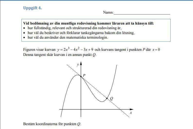 P där x = 0 Denna tangent skär kurvan i en annan punkt Q.