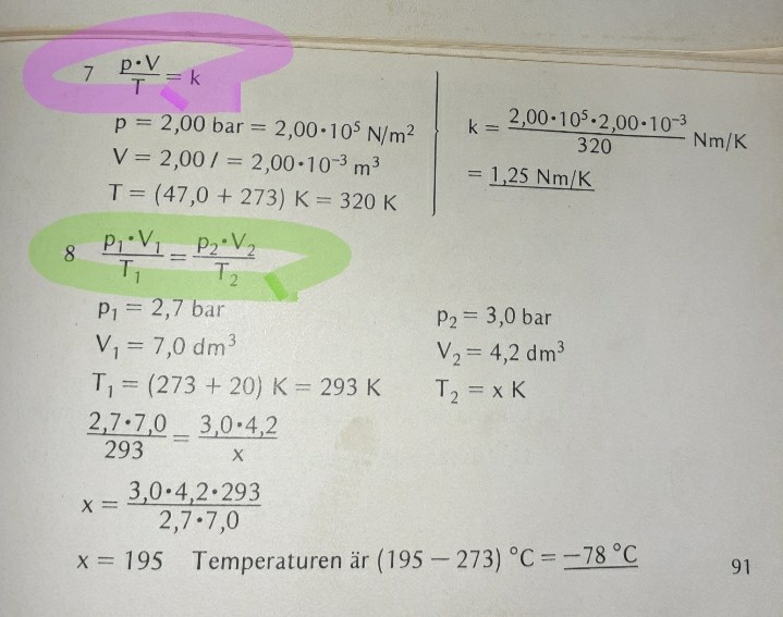Så räknar man med enheterna N/m^2, m^3 och K.