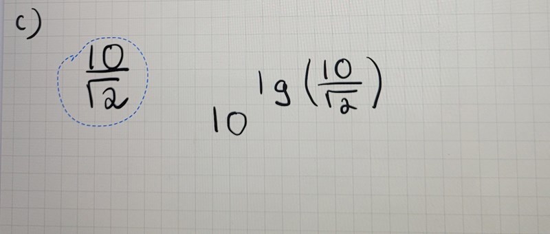 10lg10- 10lg √ 2, men i facit har de förenklat det lite annorlunda