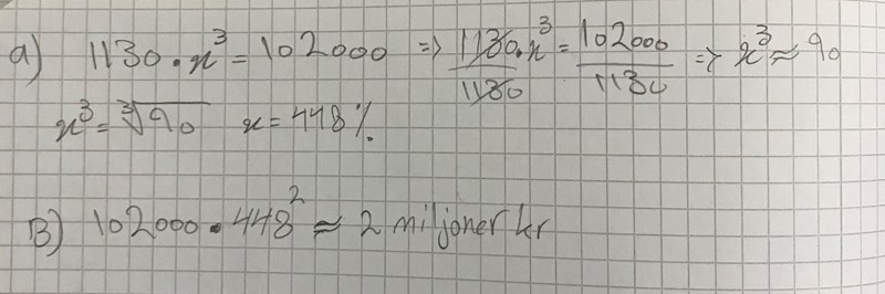 Om jag förstår bra, det måste (4,49-1)= 3,49. Här 1 betyder 100%.  Och B) blir 102000*3,49^2=1,24mkr???