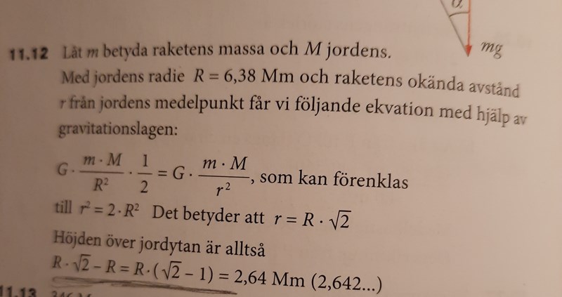 På vilken höjd över jordytan är en rakets tyngd hälften så stor som vid jordytan? Uppg 11.12