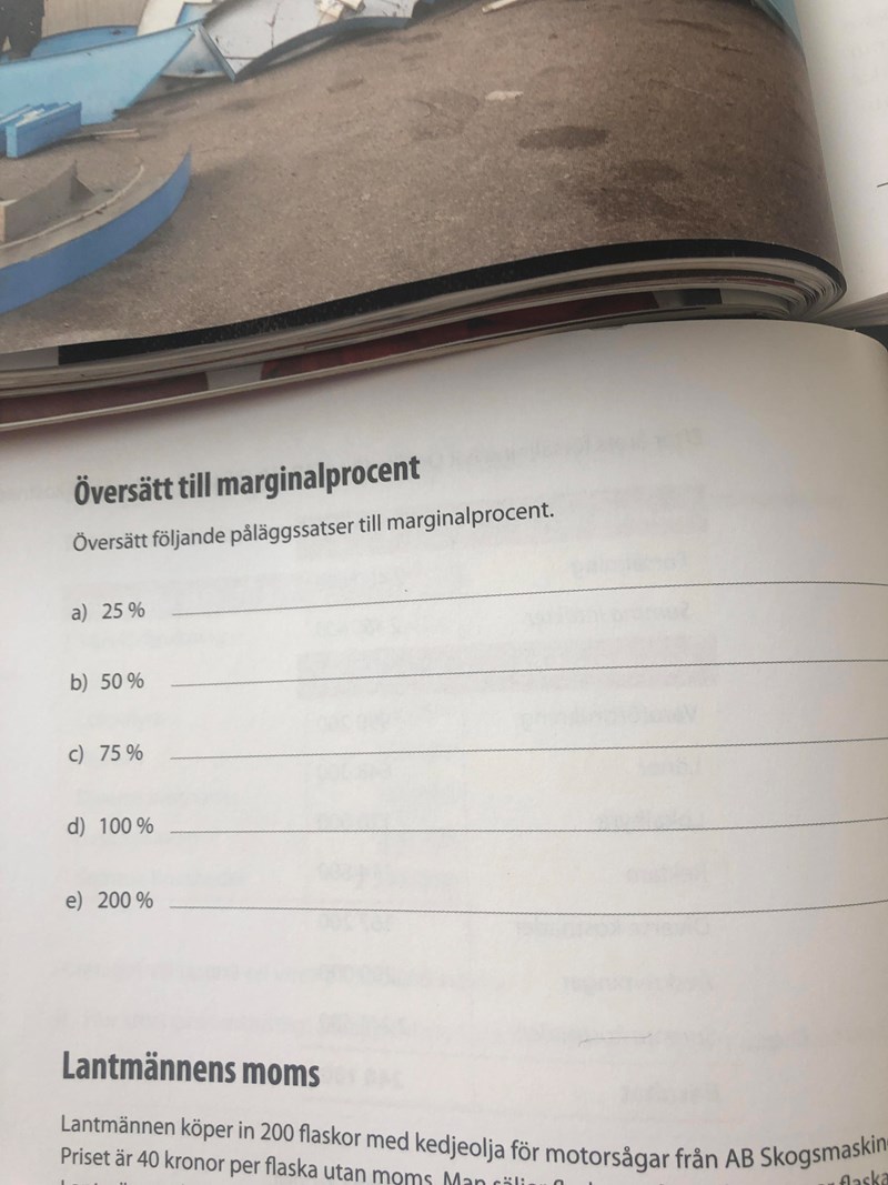 I en uppgift i min bok Så ska jag översätta påläggssatser till marginalprocent