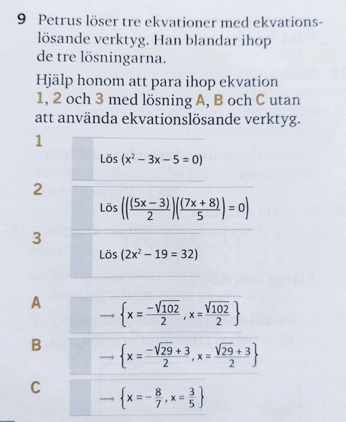 Någonting säger mig att det egentligen inte är så det är tänkt att man ska göra. Facit ger endast svar utan någon förklaring eller ledtråd.