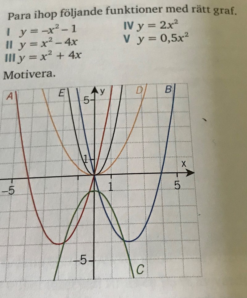 Para ihop följande funktioner med rätt graf