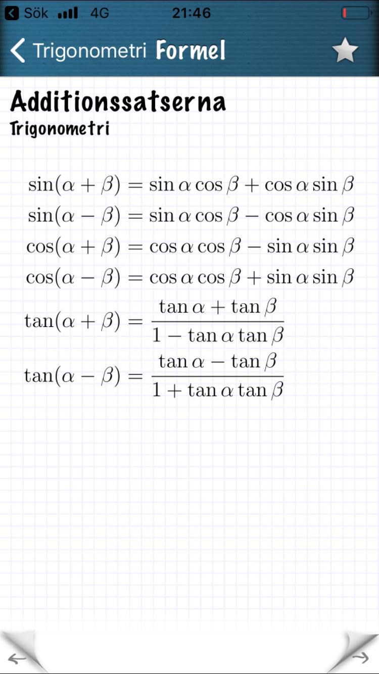 Meme åtsido, när du har ovanliga vinklar som denna, är additions-/subtraktionsformlerna utmärkta!