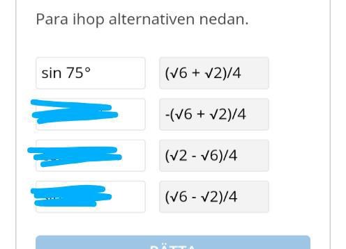 Har fastnat på denna uppgift där man ska para ihop sin75° med ett av alternativen till höger: