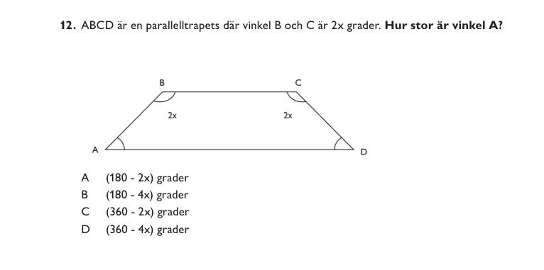 Utnyttja sedan att BC och AD är parallellaOlämpligt med samma beteckningar på hörnen och ssvarsalternativen