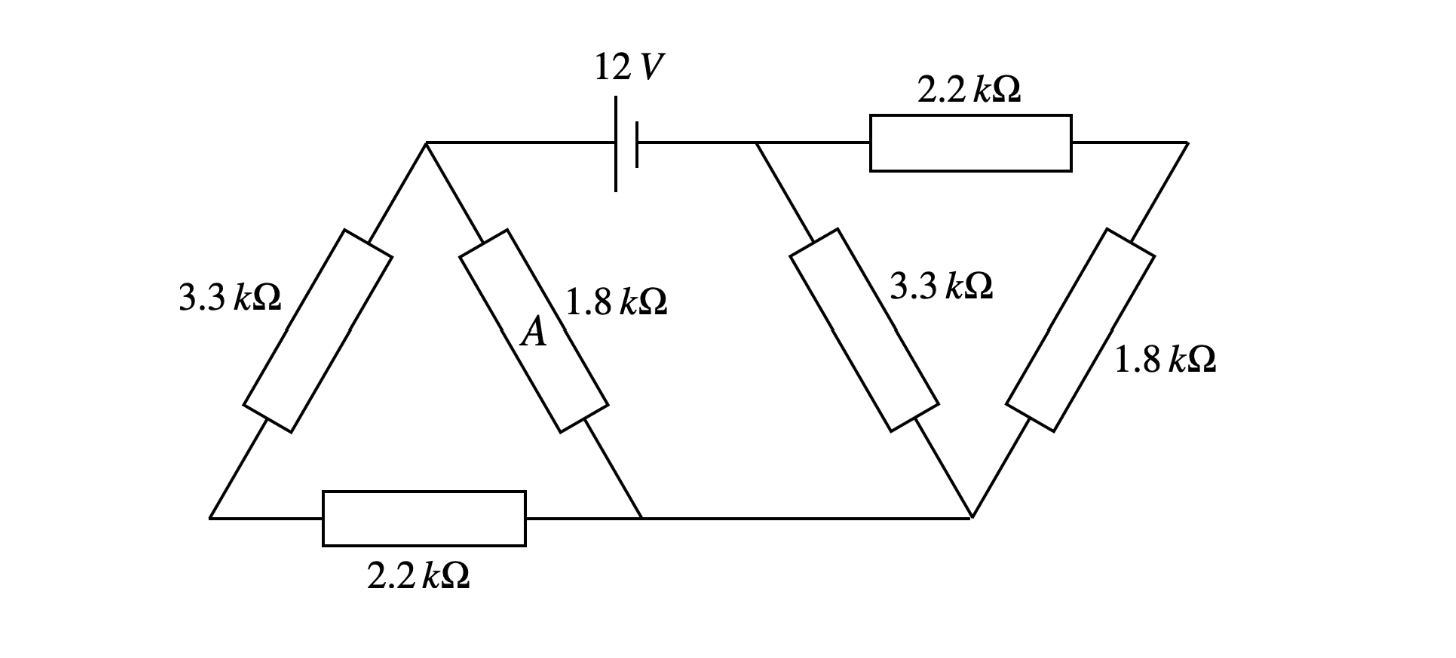 R1 och R3 ligger i serie, de två är sedan parallella med A