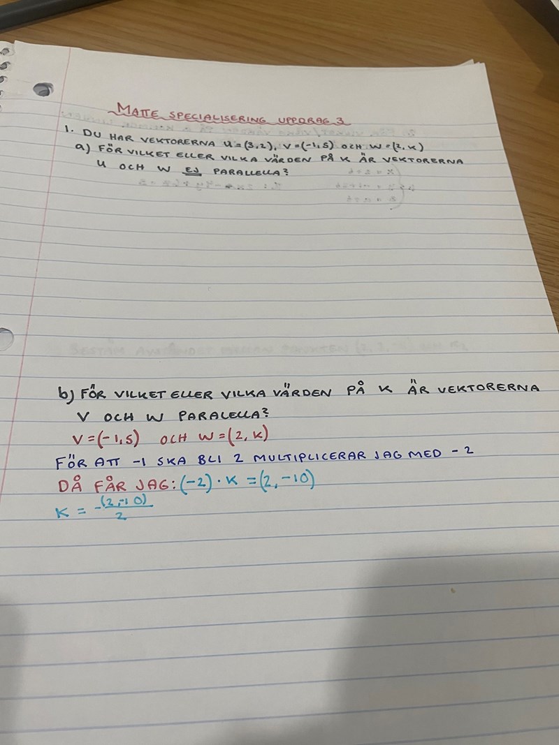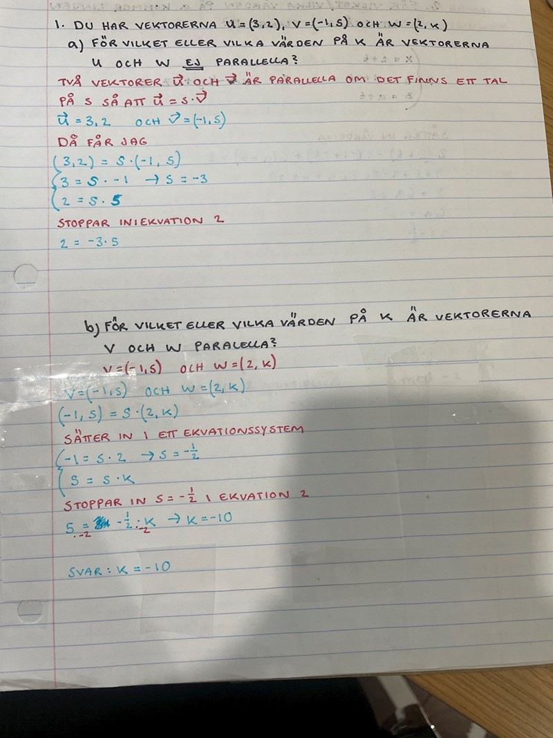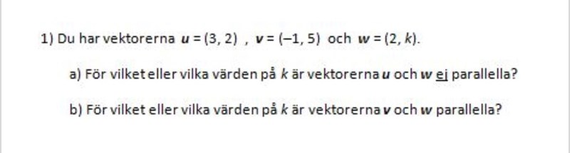 På a-uppgiften är svaret att vektorerma ej är parallella då k 4/3.