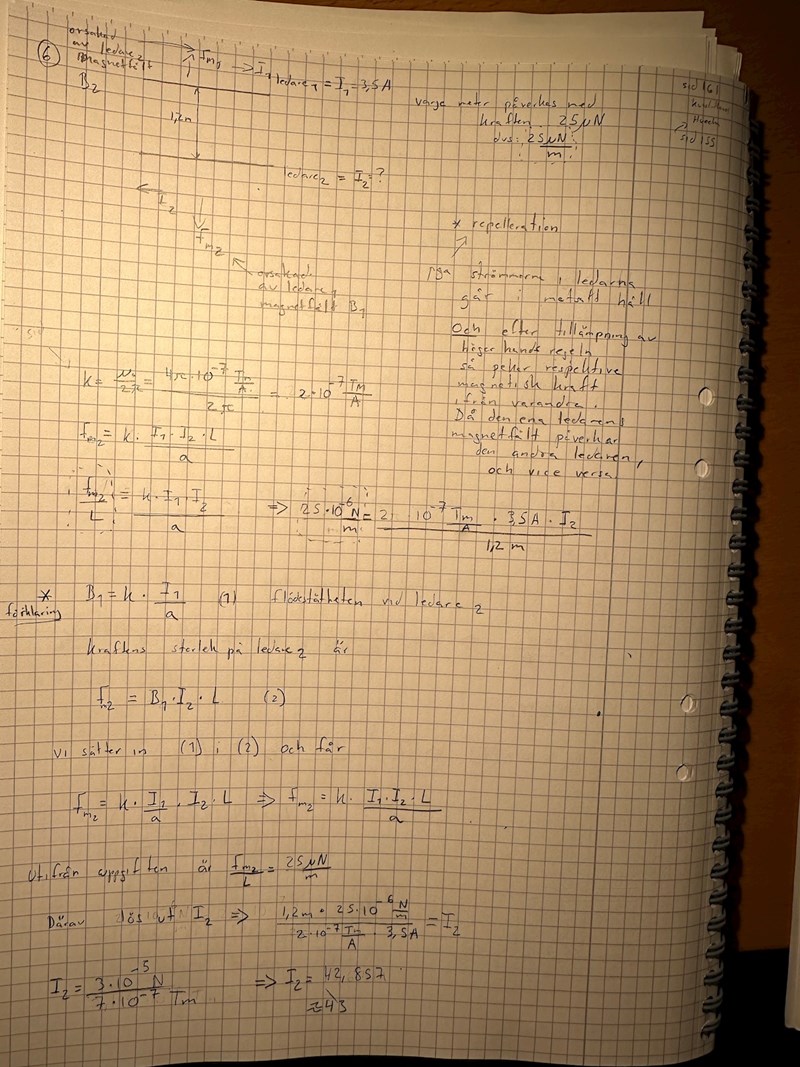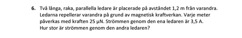 F/L = 25 mikroNewton/m gäller väl för båda ledarna. Man behöver inte veta längderna?