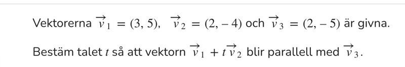 Jag satte upp sambandet: v1+v2= (3,5)+(2t,-4t) men fattar inte hur jag ska gå vidare.