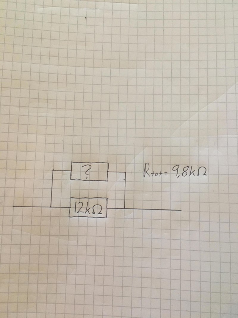 Hej! Hur räknar jag ut vad resistansen ska vara i motståndet för att få den totala resistansen 9,8k i kretsen?