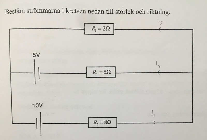 Du har ju två variabler såhär långt så du behöver göra en vandring till för att kunna lösa ut strömmarna.