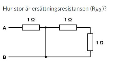 Na5a skrev:Varför är svaret 1 ohm? Jag räknar ut det till 2/3 ohm som är fel. Jag kom fram till det genom att addera resistorerna på höger om det vertikala strecket eftersom de är seriekopplade och sen så är den nya produkten parallellkopplad med 1 ohm resistorn till vänster om det vertikala strecket.