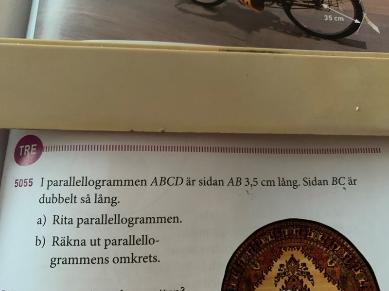 eftersom att ett parallellogram är en fyrsidig form med två långa sidor och två kortare så blir det såhär: när man adderad a+b blir det 3,5 de betyder att när man subtraherar a ifrån 3,5 blir det lägre än 3,5 och tvärtom om man subtraherar b ifrån 3,5 . Så då tänkte jag att a och b är dom två korta sidorna som är lika långa .