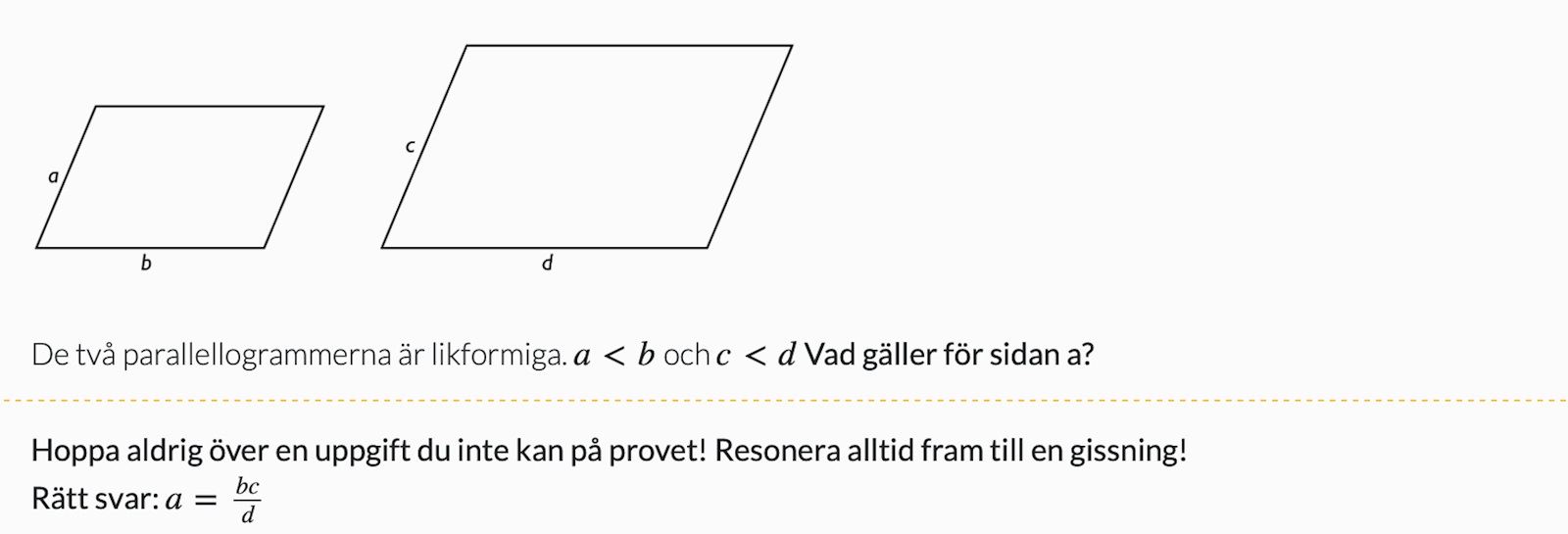 Är du med på att eftersom parallellogrammen är likformiga så gäller det att